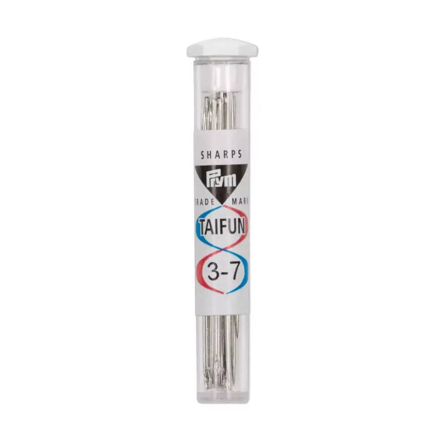 Ці довгі швейні голки виготовлені із загартованої сталі та оснащені симетричним срібним вушкам без задирок. Їх тонко заточене вістря, гладка поверхня з покриттям і тонка, довгаста форма вістря дозволяють їм легко ковзати по всіх поширених тканинах.Завдяки збалансованій еластичності навіть найтонші голки не ламаються і не гнуться. Голки «Taifun» продаються в невеликому пластиковому сагайдаку