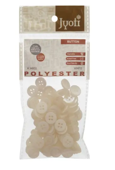 34602 Пластикові гудзики білі діам. 1 см, 100 шт. JYOTI