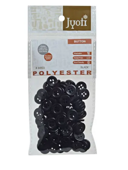 34603 Пластикові гудзики чорні діам. 1 см, 100 шт. JYOTI