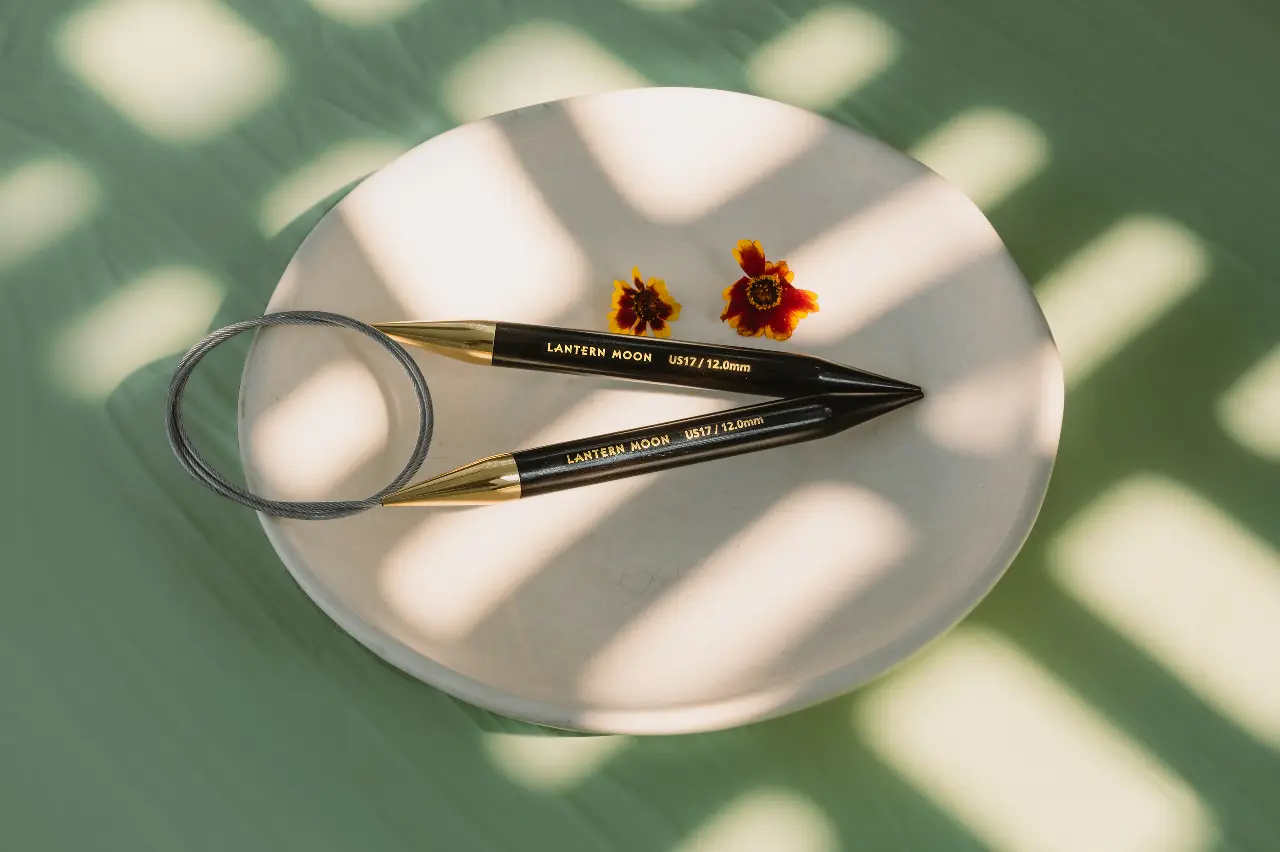 Кругові спиці Lantern Moon виготовлені з чорного дерева, однієї з найцінніших порід у світі. Спиці покриті рідким шовком, а також покриття 24K на латунному з’єднувачі гарантують рівномірне в’язання без зачіпок. Гладкий кабель не скручується та лежить рівно під час зберігання. Ретельно відточені та сформовані кінчики спиць добре підходять для будь-якого типу пряжі.