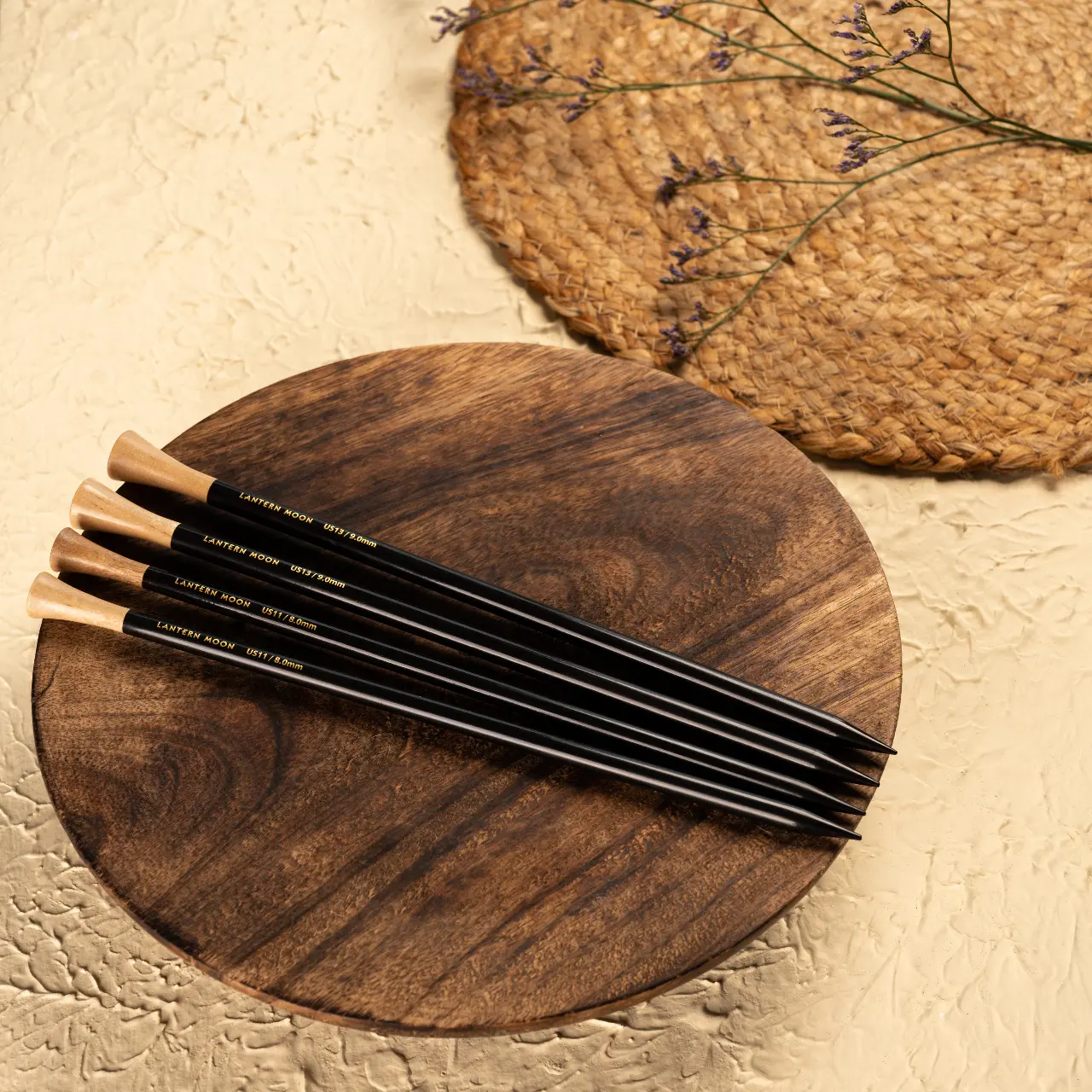 Спиці для в’язання Lantern Moon виготовлені вручну з використанням чорного дерева, одного з найцінніших матеріалів у світі. Це рідке шовкове покриття спиці, вони чудово працюють з усіма видами пряжі, не зачіпаючи та не розриваючи волокна. Плавне ковзання по довжині спиці додає ритмічного задоволення від в'язання. Якщо ви досвідчений в’язальник, ми впевнені, що ви подумаєте, що це одні з найкращих спиць, якими ви коли-небудь користувалися. Якщо ви новачок в’язальниця, то вас чекає плавне в’язання спицями Lantern Moon. У будь-якому випадку, ми думаємо, ви погодитеся, що це одна з найкращих спиць на ринку.