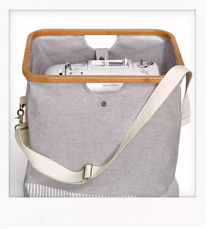 Сумка Store & Travel “Canvas & Bamboo” — це ідеальний варіант для зберігання та транспортування побутових швейних машин вагою до 10 кг, захищених від пилу. У ній легко розмістяться всі ваші шерстяні нитки та швейні аксесуари. Для відвідування майстер-класів сумку можна закрити на кнопку й носити за бамбукову ручку або за регульований бавовняний плечовий ремінь.
