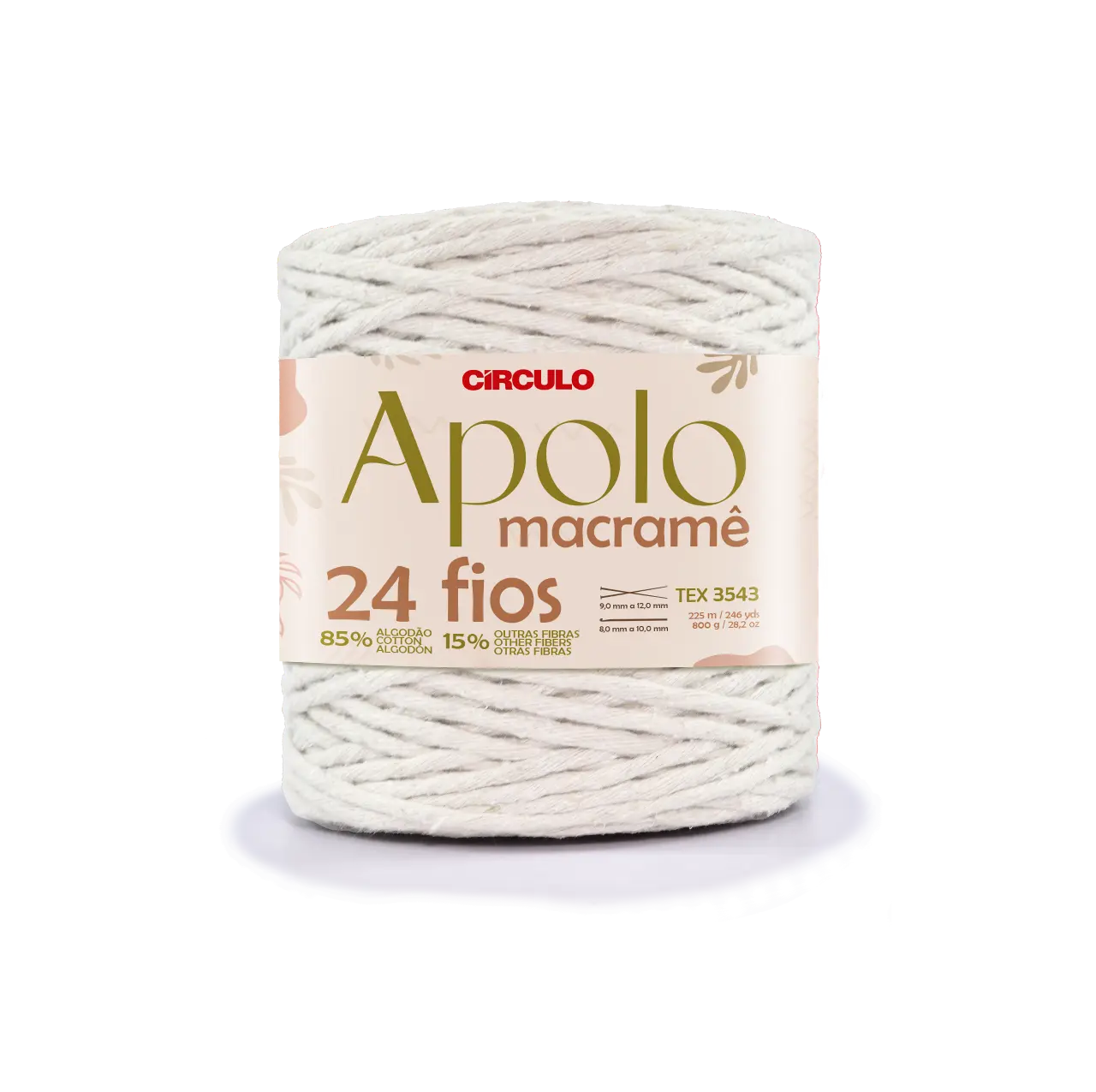 З 24 нитками, що забезпечують більшу чіткість та міцність, Apolo Macramé пропонує ідеальне завершення для ваших проектів. Виготовлена з 85% бавовни, це природний вибір для тих, хто цінує сталий розвиток, не жертвуючи якістю. Пряжа доступна в 16 яскравих кольорах, що дозволяє створювати нескінченні комбінації для ваших витворів макраме, в'язання гачком та спицями.