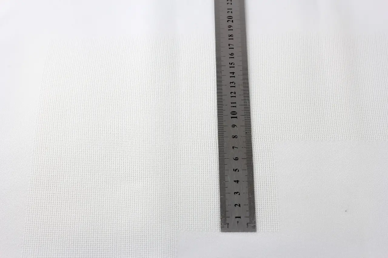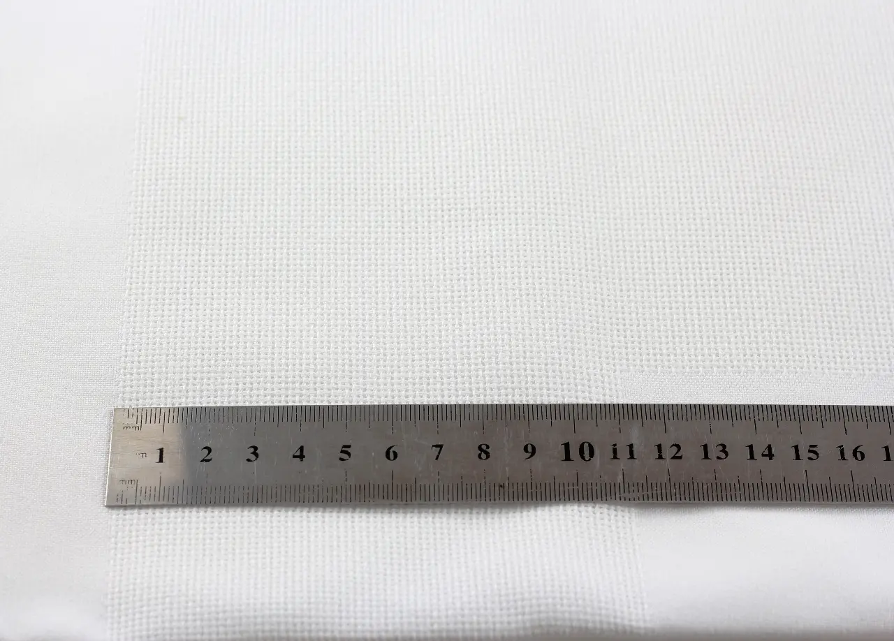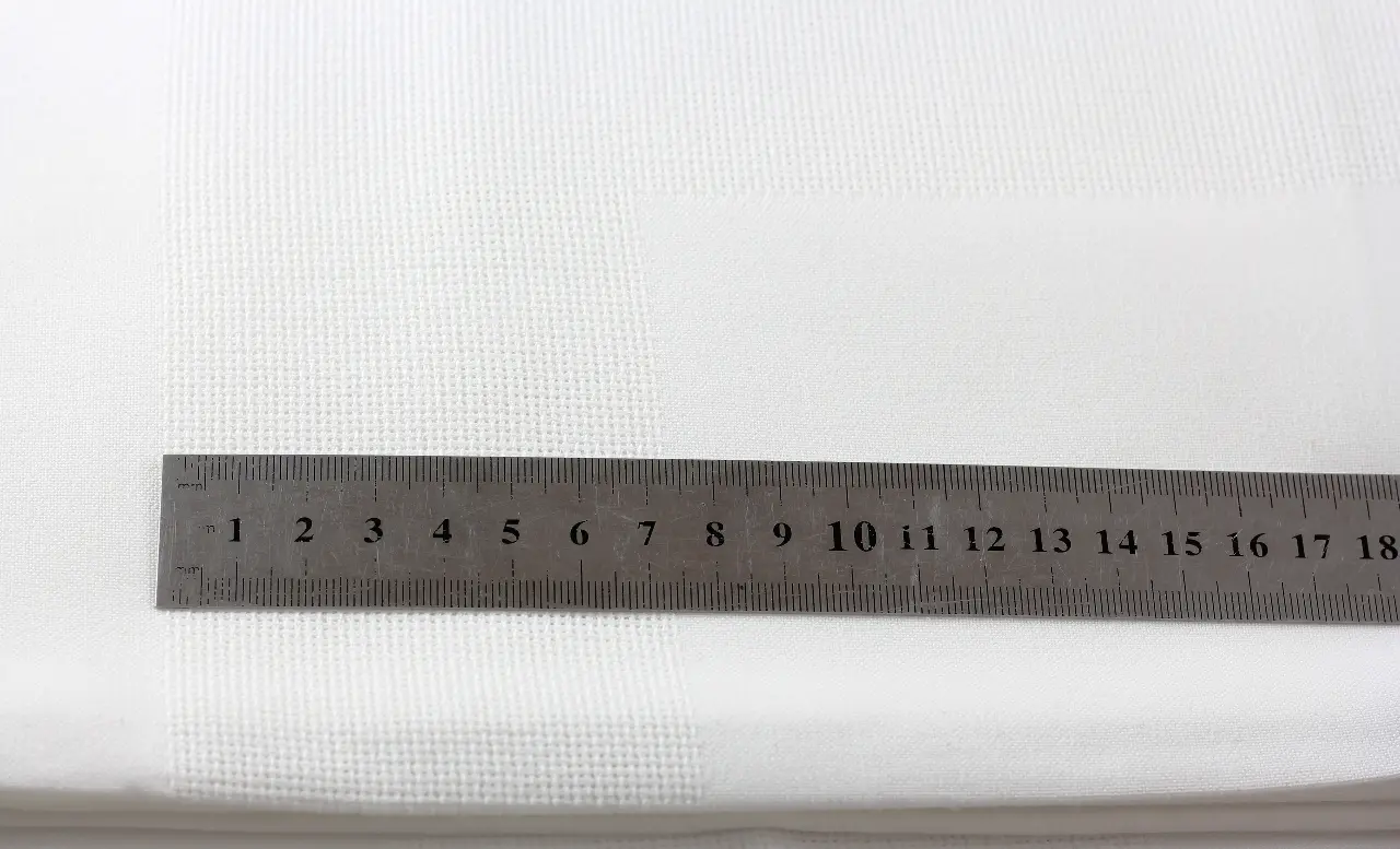 Готова біла скатертина для вишивання (вставки для вишивання розташовані так, як показано на малюнку). Зашивається квадратна область по центру та периметр.