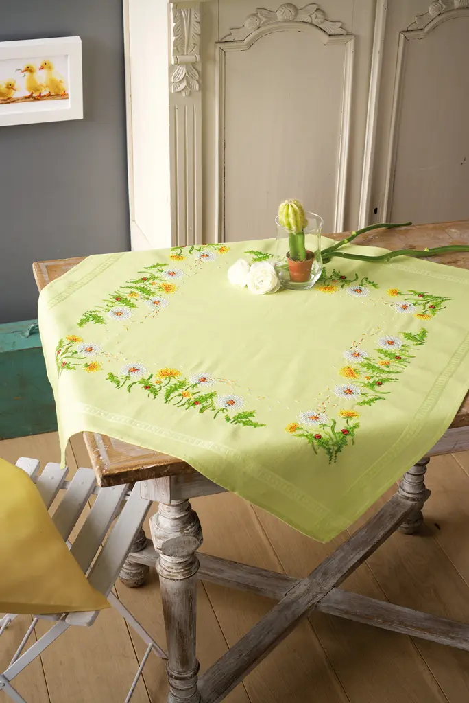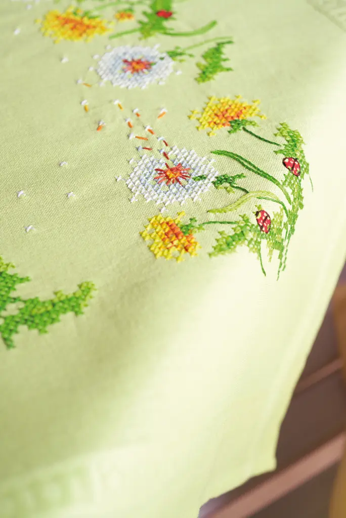 У набір входить: інструкція, символьна чорно-біла схема, тканина для вишивання з нанесеним малюнком (змивається), бавовняне муліне DMC та голка.